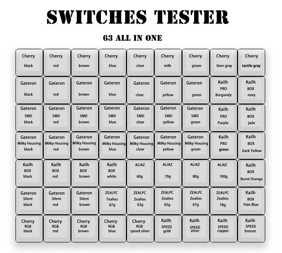 - 81 Cherry Kailh Gateron Outemu acrylic base (aliexpress)